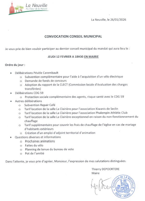 L’équipe municipale se réunira en mairie le 12 février à 18h30