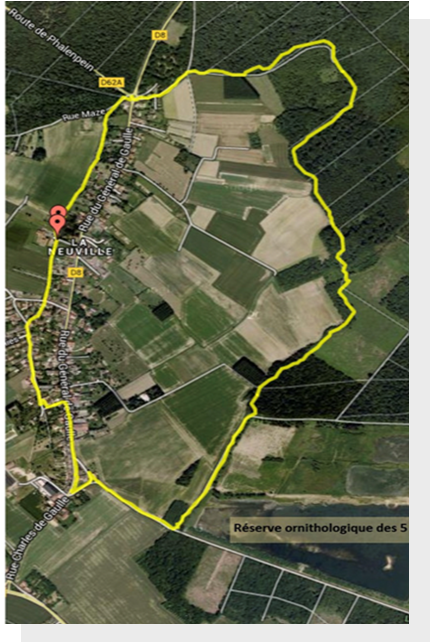Facile. 5 km. Départ du centre du village (parking gratuit salle polyvalente La Clairière). La boucle emprunte voyettes, chemins de forêt et quelques larges zones ouvertes sur la plaine locale pour revenir à son point de départ situé non loin de l’école. Ce circuit PR est balisé en jaune. Il est inscrit au PDIPR, ce qui lui donne un statut juridique. Il devient ainsi inaliénable.